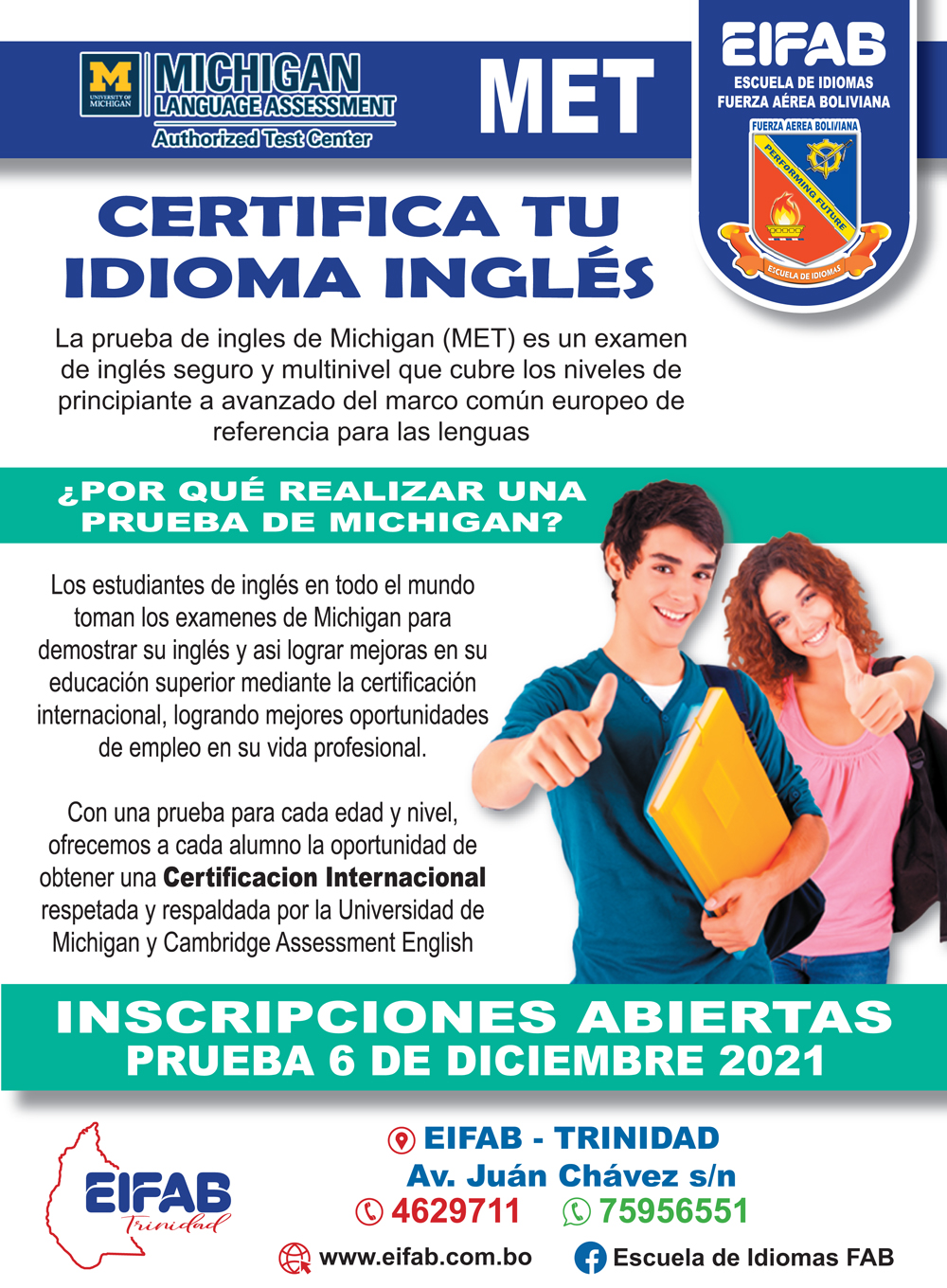La EIFAB Trinidad se encuentra en un período de trámites para poder brindar a sus estudiantes la posibilidad de obtener la certificación como TÉCNICO MEDIO Y SUPERIOR en idioma Inglés.
