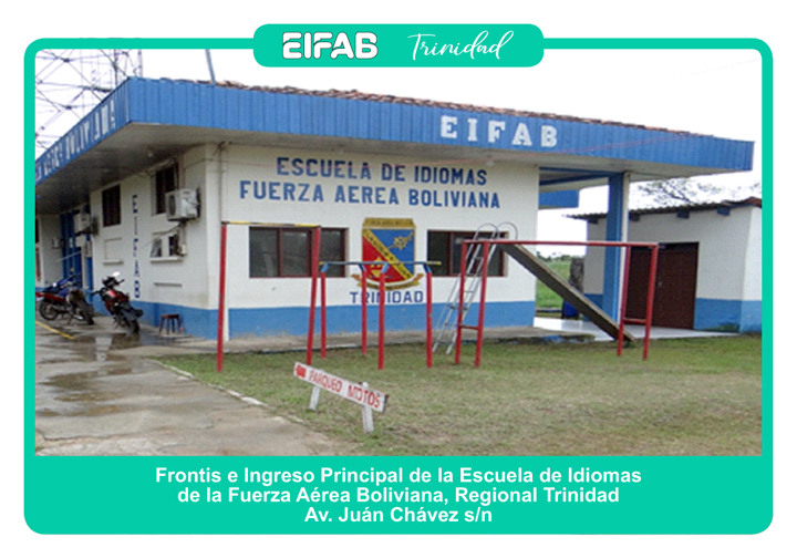 La Escuela de Idiomas de la Fuerza Aérea Boliviana (EIFAB), Regional Trinidad, fue fundada el año 2008, ocupando las instalaciones del aquel entonces Grupo Aéreo de Transporte “72”, con el objetivo de cubrir las necesidades de la población en general para la enseñanza del idioma inglés. En el año 2009 se comienza con la construcción de las dependencias propias para esta Dirección Regional.