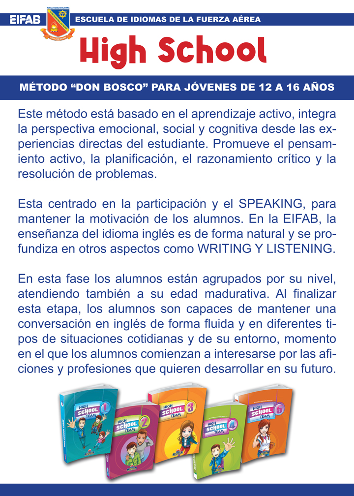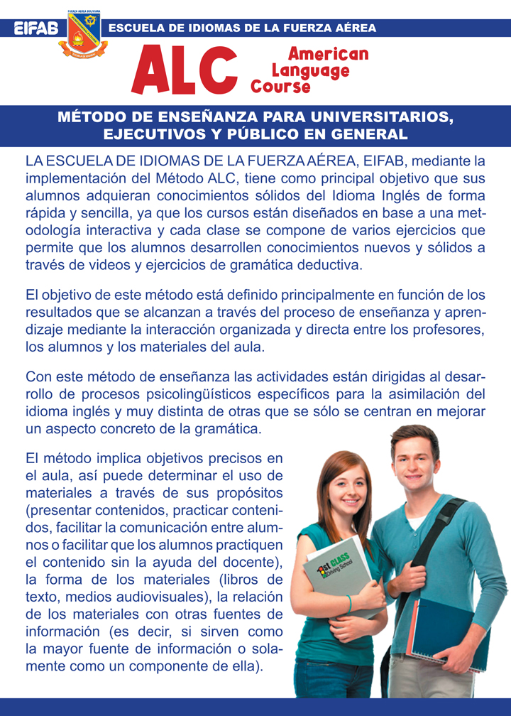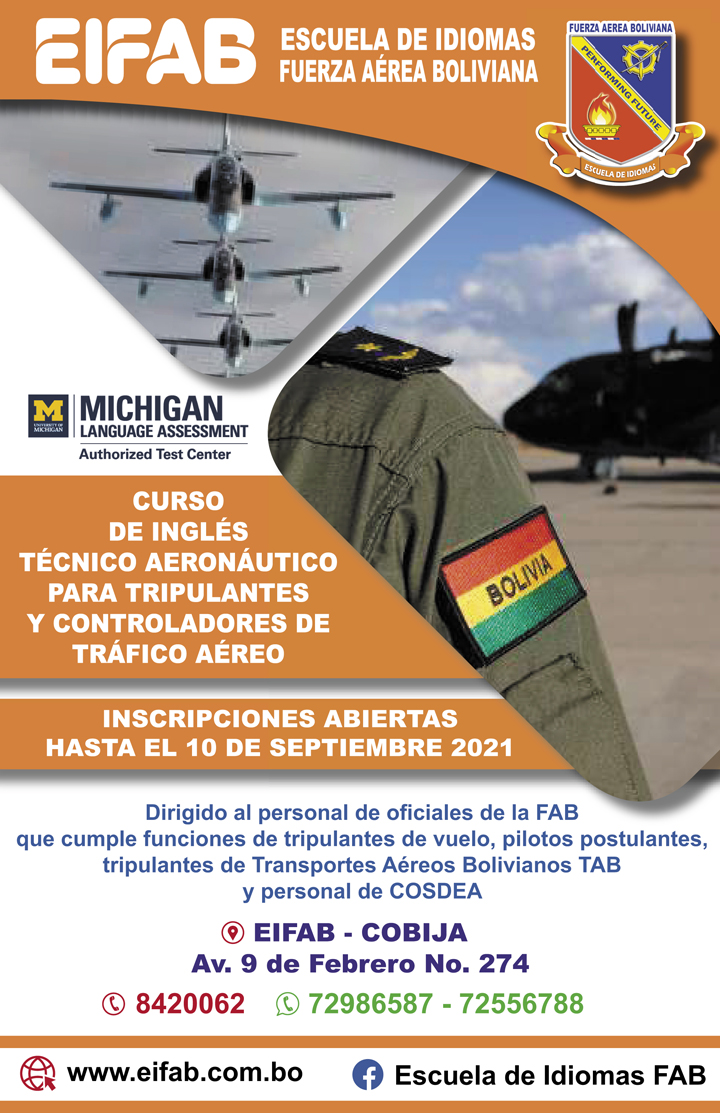 La Escuela de Idiomas de la Fuerza Aérea Boliviana (EIFAB), fue creada en fecha 2 de diciembre de 1999, mediante Orden del Día de la F.A.B. Nº. 108/99 del Comando General de la Fuerza Aérea Boliviana, con la Misión de “Impartir la enseñanza de idiomas a los señores Oficiales, Suboficiales, Sargentos, Cadetes, Alumnos, Personal de la Fuerza Aérea y población Civil en general, permitiendo su uso práctico en la especialidad que desempeñen, A FIN de satisfacer los requerimientos institucionales así como las exigencias profesionales”, la EIFAB depende directamente del Comando General de la F.A.B. a través del Departamento V Educación del Estado Mayor General de la F.A.B.